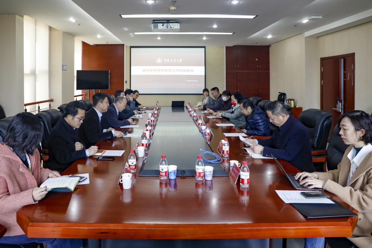 (通讯员 卢思冰 摄影 郄屹)新学期,我校全面恢复线下教学。为进一步规范课堂教学行为,更好地维护课堂教学秩序,赋能学校教育教学质量提升,教育质量评估与督导处联合离退休工作处、关心下一代工作委员会,充分发挥退休教师余热,组建了一支由退休教师组成的教学秩序专项督导队伍。3月23日上午,教学秩序专项督导工作启动会在明德楼1218会议室召开。会议由教育质量评估与督导处处长张涛主持。中国传媒大学副校长、校关心下一代工作委员会主任刘守训,校关心下一代工作委员会常务副主任、校党委原副书记姜绪范出席会议并讲话。退休教师高慧燃教授、杨树雨教授、姜秀华教授与毛明华教授作为首批教学秩序专项督导专家参加了会议。