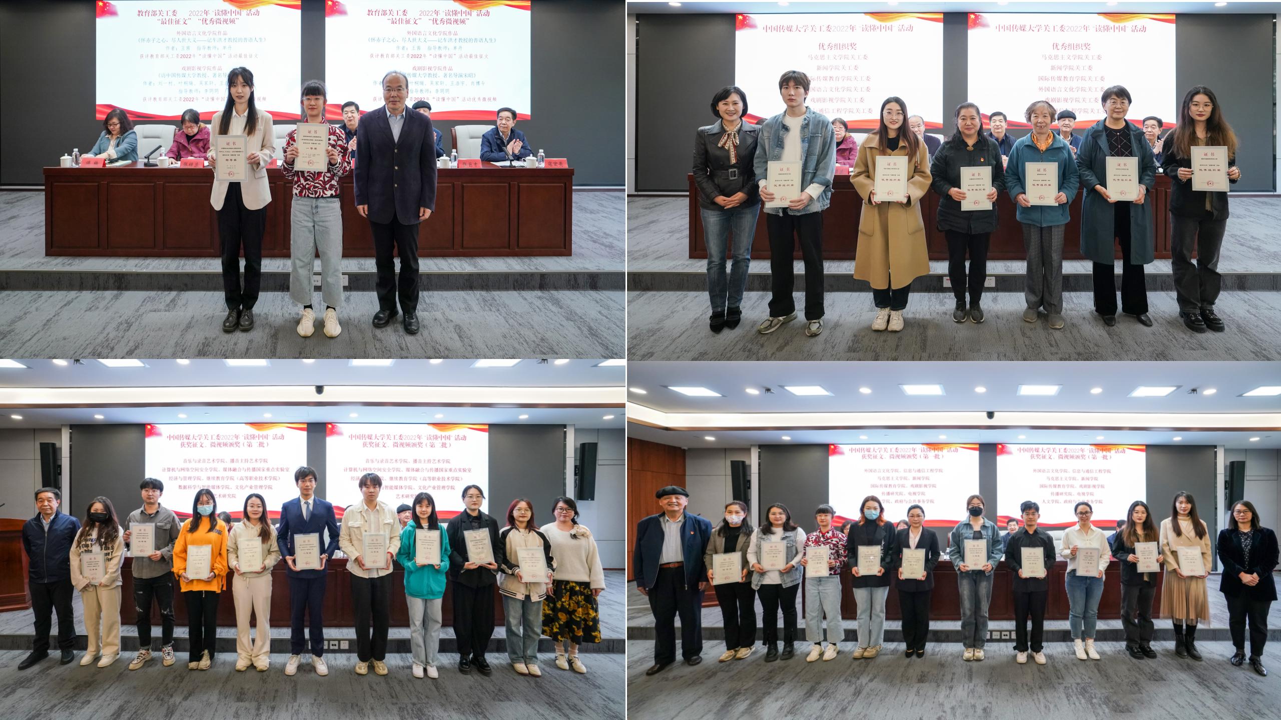 现场还为获得北京市教育系统关心下一代工作先进集体、先进个人,教育部关工委2022年“读懂中国”活动“最佳征文”、“优秀微视频奖” 获奖单位和个人及中国传媒大学关工委评选的“读懂中国”活动“优秀组织奖”、校级优秀征文和校级微视频获奖单位和个人,颁发了奖牌和证书。