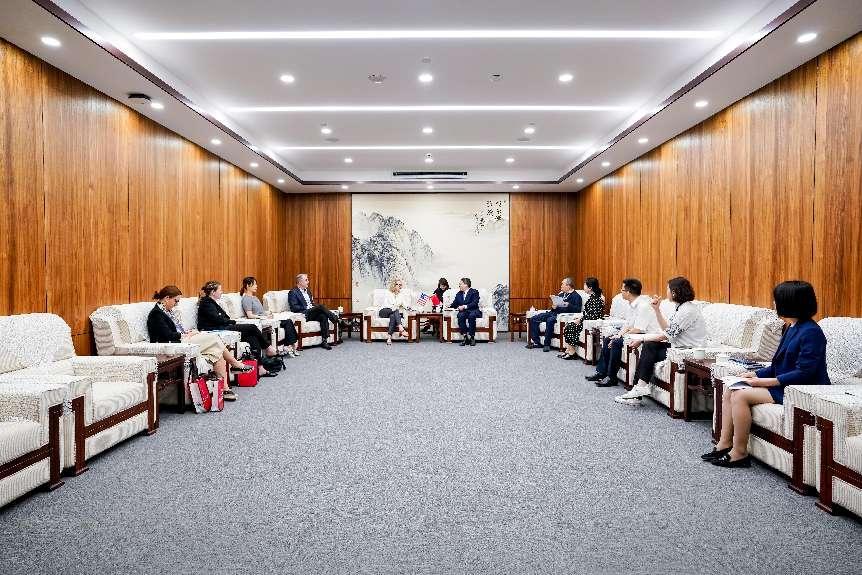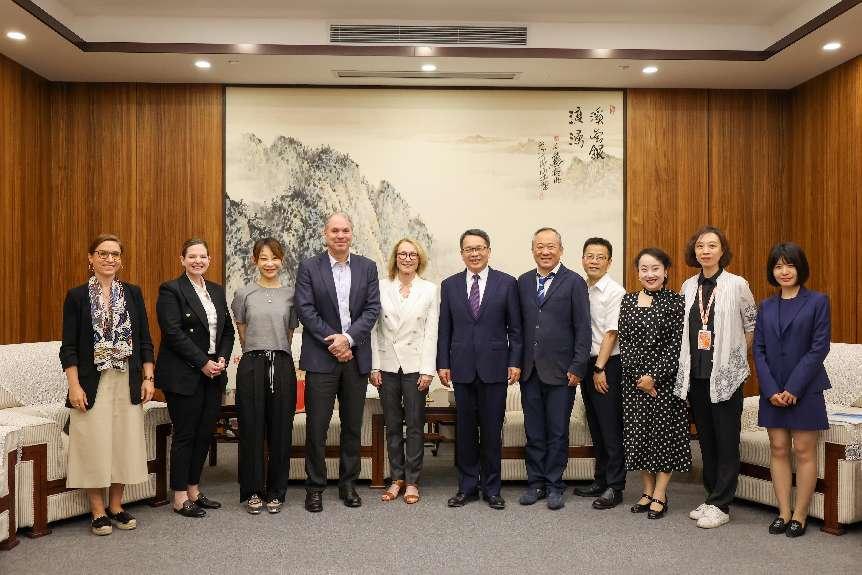 中国传媒大学校长张树庭会见来访客人一行,双方就进一步加强两校交流与合作进行了会谈。中国传媒大学副校长段鹏、国际交流与合作处处长钟丹丹、动画与数字艺术学院副院长陈京炜、音乐与录音艺术学院副院长赵志安、国际交流与合作处交流合作科科长李想、北京市教育委员会国际处干部郭奇琦等参加会见。