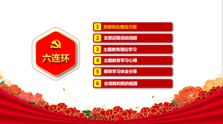 活动最后,全体合唱《我和我的祖国》。在激昂的歌声中,本次支部党员大会圆满结束。