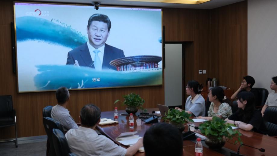 王晖指出,我们要高度重视理论武装,要用党的创新理论统一思想、统一意志、统一行动,坚定信仰信念,铸牢对党忠诚,弘扬伟大建党精神,推动全党为全面建设社会主义现代化国家、全面推进中华民族伟大复兴而团结奋斗。大家作为研究生,要强化使命担当,从科研规划、科研方向、科研选题、科研目标等入手,充分体现国家意志、有效满足国家需求、代表国家最高水平创新价值标准,保证科研工作始终沿着正确政治方向创新发展。希望同学们刻苦学习,练就过硬本领,提高科研自觉性,服务国家战略需求,应用到传播领域,向世界传播中国声音。