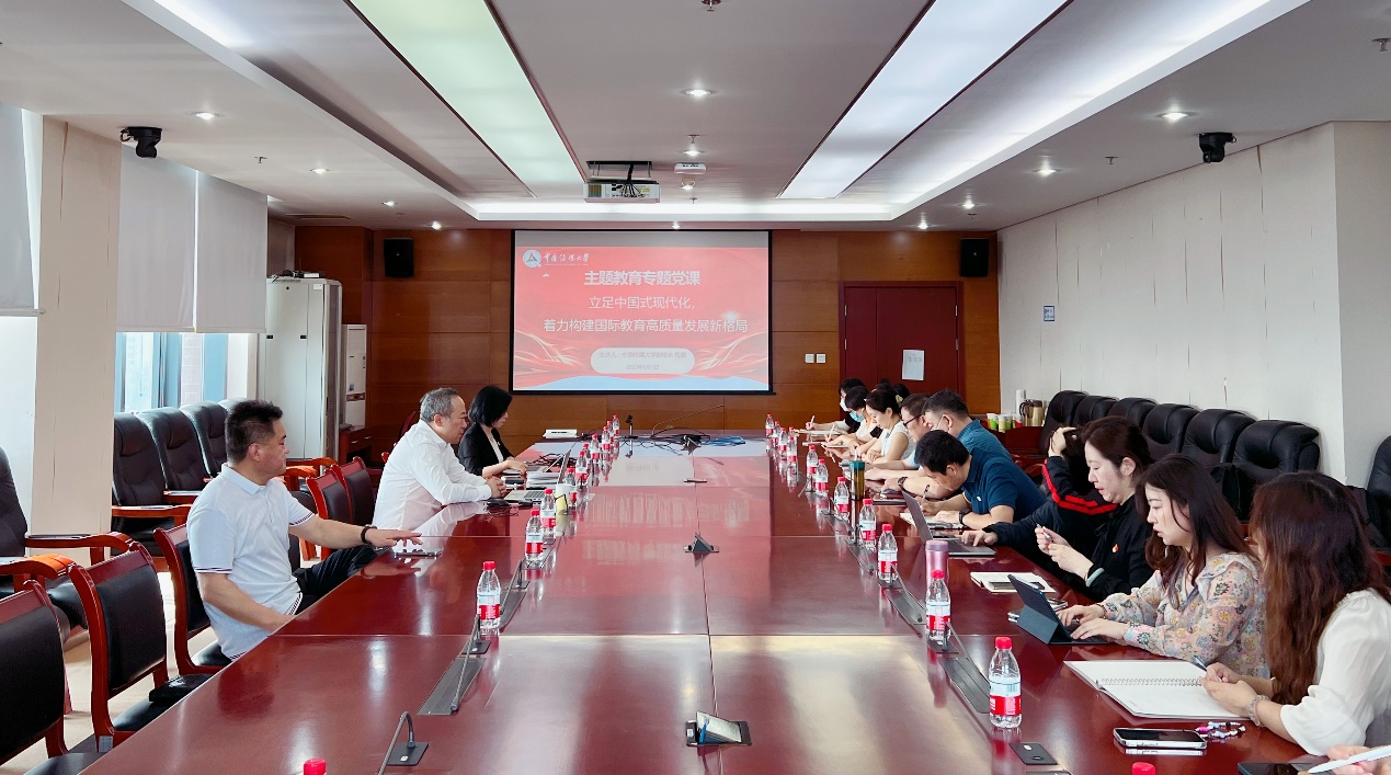 (通讯员 王昕 摄影 王昕)近日,为持续深入开展学习贯彻习近平新时代中国特色社会主义思想主题教育,落实主题教育“学思想、强党性、重实践、建新功”的总要求,根据学校主题教育实施方案总体安排并结合分管工作,段鹏副校长以“立足中国式现代化,着力构建国际教育高质量发展新格局”为主题,为国际传媒教育学院(境外学生事务中心)全体教职工讲授主题教育专题党课。