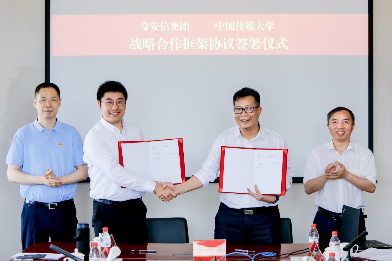 继2021年“红色云展厅”项目合作,中国传媒大学与奇安信集团建立了深厚友谊;2022年10月,廖祥忠书记、张树庭校长带队赴奇安信集团调研交流;今年2月,奇安信集团一行到访学校,就网络安全学科建设、科学研究和人才培养达成初步共识。此次战略合作框架协议的签署,是双方在良好合作基础上,聚集双方资源优势,聚焦网络空间安全学科建设与人才培养,聚力科研成果加速落地和推广应用,更好地服务支撑国家重大战略而做出的重要举措,同时也是落实主题教育“学思想、强党性、重实践、建新功”总要求的具体体现。