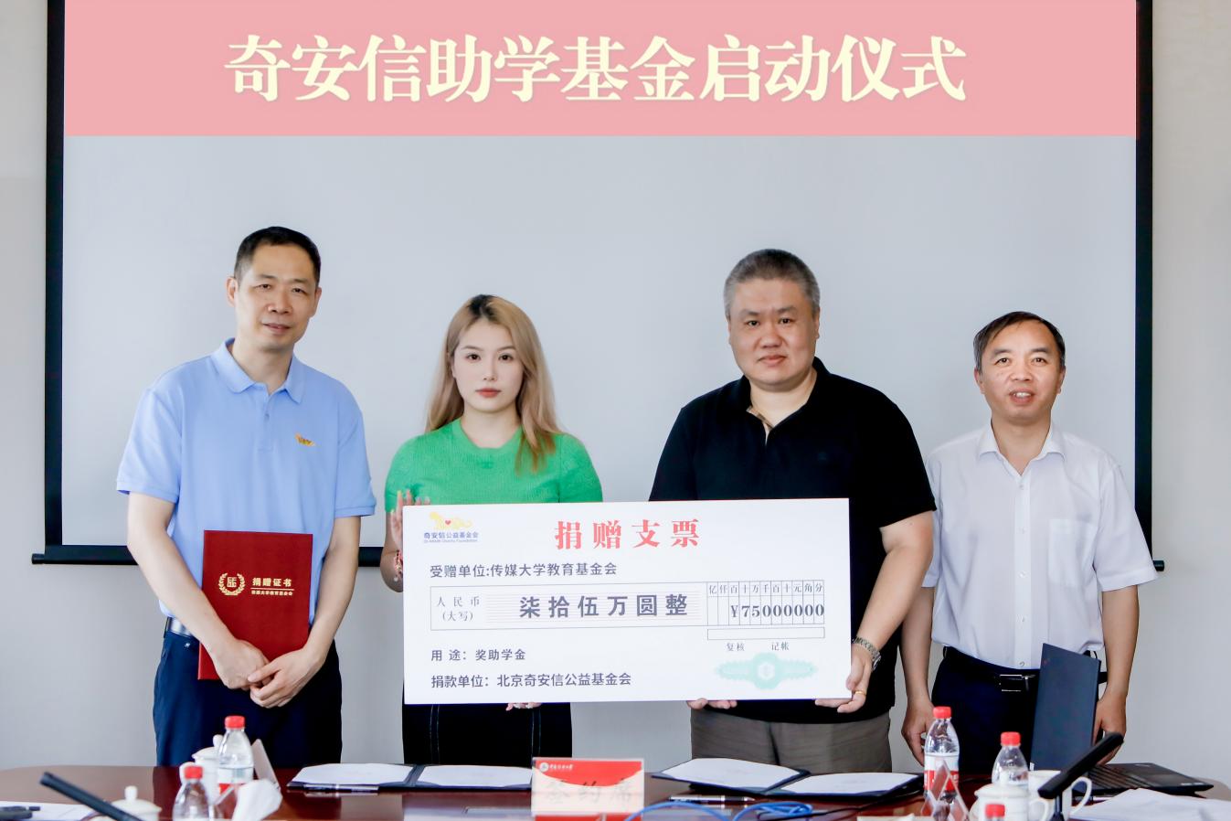 在随后举行的“中国传媒大学-奇安信助学基金”启动仪式上,传媒大学教育基金会秘书处秘书长杨鹏、北京奇安信公益基金会秘书长齐子昕分别讲话并签署捐赠协议。杨鹏秘书长对奇安信公益基金会的捐赠表示感谢。他表示,传媒大学教育基金会一定妥善高效地将助学金管理好、使用好,切实达成最大化的公益价值。齐子昕秘书长表示,中国传媒大学是奇安信基金会“心安助学”项目2023年资助的第一所高校,具有里程碑式意义。希望该基金能为传媒大学网络空间安全学院家庭经济困难学生创建安全、有保障的学习生活环境,切实改善他们的学习和就业状况。