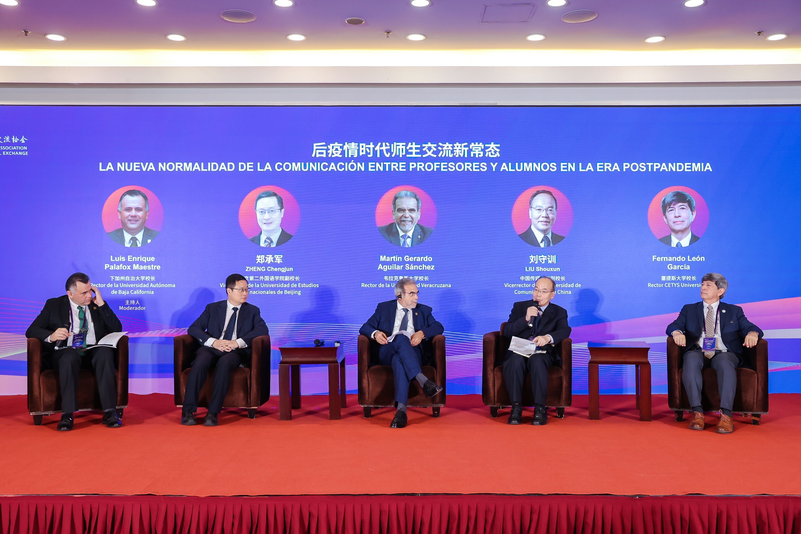 此次论坛设有3个议题,在“后疫情时代师生交流新常态”议题环节,刘守训做了“国际化战略与师生全球流动”的主题发言。他首先介绍了学校的基本情况、国际化建设的发展战略、国际化人才培养的探索实践及目前所取得的成绩,并就传媒大学与墨西哥高校的教育交流合作、我校西班牙语的专业建设、开展国际合作的优势特色等做了重点说明。他指出,今年恰逢中墨建立全面战略伙伴关系十周年,中墨虽然相距遥远、文化背景迥异,但两国之间的文化交流却历史悠久,两国教育合作前景广阔。中国传媒大学愿意发挥自身独特的专业、语言和文化优势,在促进中墨双边人员和学术交流方面发挥更大作用。