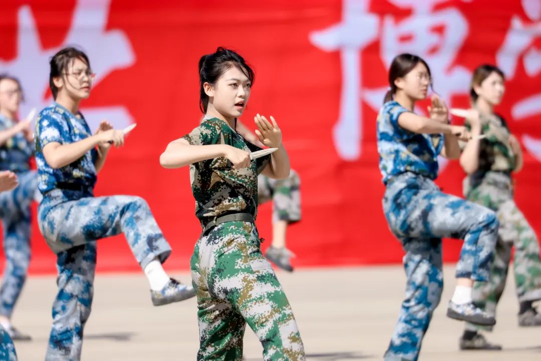 在军训成果汇报表演中,参训学生展示了擒敌拳、匕首操、战术动作及学生风采,为军训交上了一份高质量答卷。