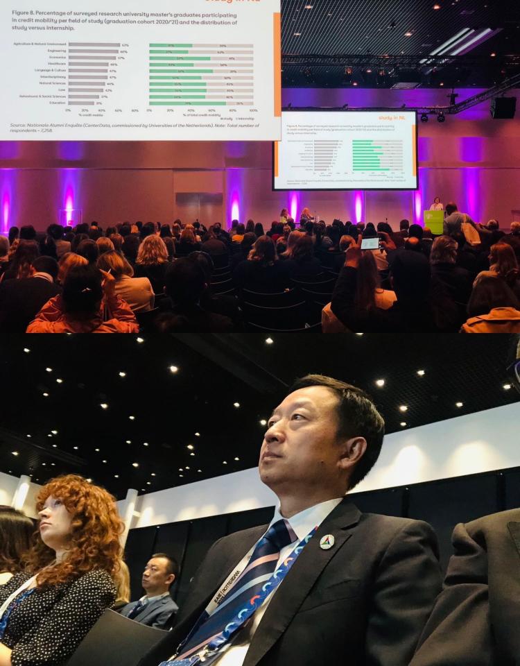 9月26日,第33届欧洲国际教育协会年会正式拉开帷幕。当天上午,我校代表团参加了年会论坛活动,聆听与荷兰高等教育发展和全球高等教育国际化可持续发展相关的讲座,了解最新国际教育发展动态,并在随后三天的展会期间,与来自29个国家的43所高校和教育机构进行了合作洽谈。按照夯实传统合作伙伴、开拓新合作伙伴、重点解决学校国际化办学发展现实问题的原则,力争使此次参展富有成效。来自世界各地的接洽高校对我校的办学理念和近年来所取得的辉煌办学成就给予了高度肯定与赞赏,并对代表团的合作倡议表现出浓厚的兴趣和初步的合作意向。