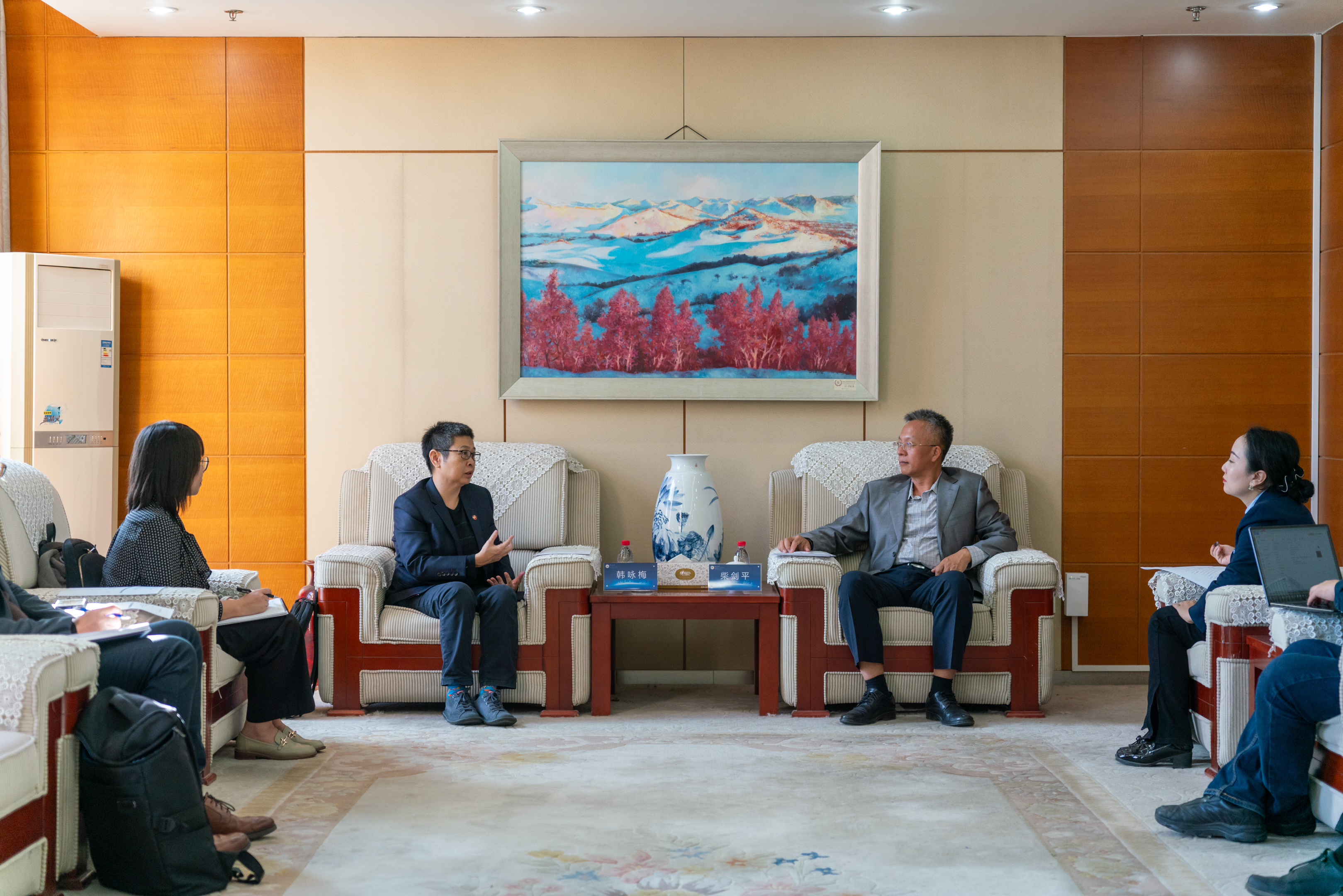 高原向来访客人介绍了具体的项目合作方案,以期通过交流学习、人才输送以及搭建普通话培训测试中心等多元方式,探索合作交流的新模式和新机制,真正做到互学互鉴,互惠互利。