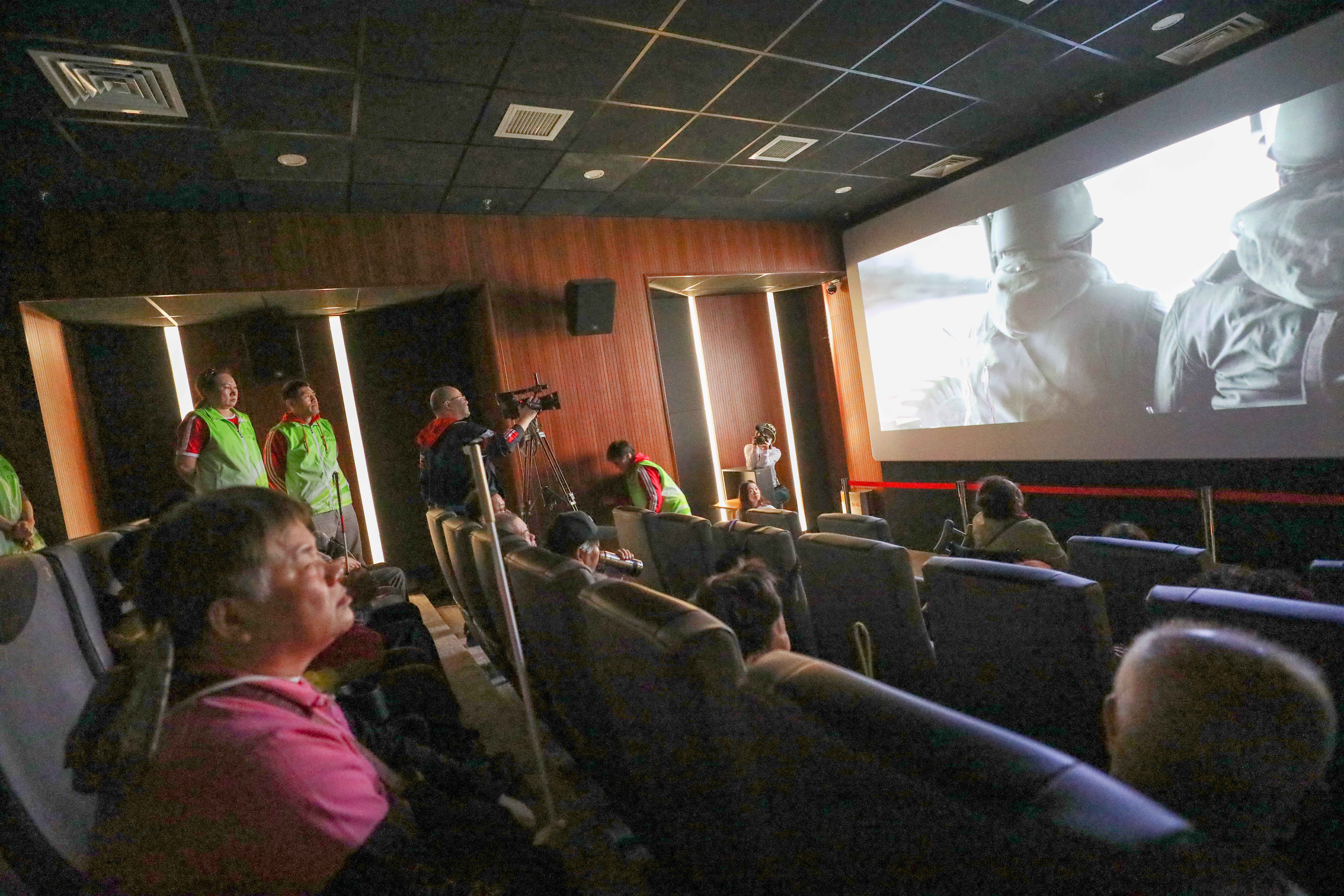 与会嘉宾与残疾人朋友们在汇爱融合影厅共同观看了“光明影院”项目团队制作的无障碍电影《狙击手》。随后两周,汇爱融合影厅将继续开展“光明影院”系列无障碍电影专场公益展映活动。
