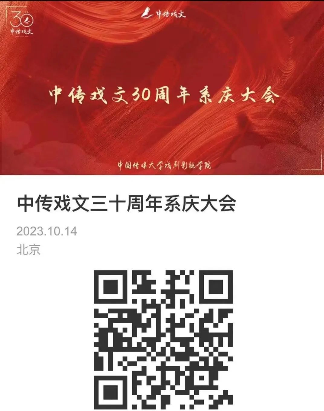 10月14日,中国传媒大学戏剧影视学院戏文系30周年系庆活动隆重举行。该活动由戏剧影视学院举办,400余名系友和20余名戏文系曾任及现任教师出席了活动。