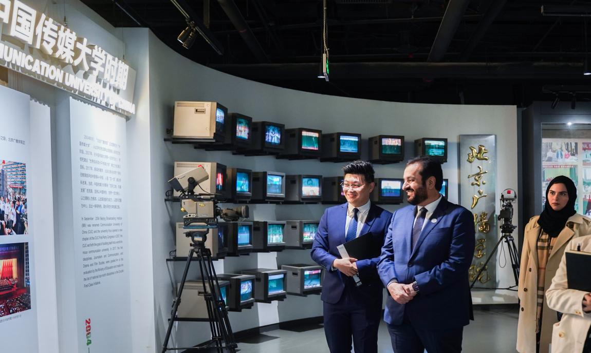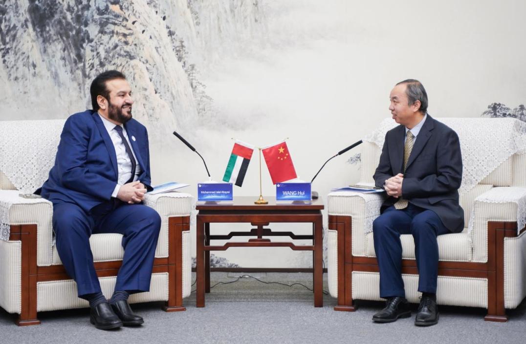 王晖首先对默罕默德·杰拉勒·拉伊斯的来访表示热列欢迎。他说,今年是中国提出共建“一带一路”倡议十周年,近年来中阿两国人文交往持续扩大,两国合作成果丰硕。中国传媒大学作为教育部直属的信息传播领域高等学府,与世界著名的国际媒体组织和国际媒体机构建立了广泛的合作关系,未来愿意借助在新闻传播、信息传播、艺术传播、文化传播、无障碍传播等方面的特色优势,同阿联酋通讯社开展多层次务实合作,同时对于阿联酋通讯社邀请我校师生参加将于今年11月份在阿联酋首都阿布扎比举办的第二届全球媒体大会表示感谢。