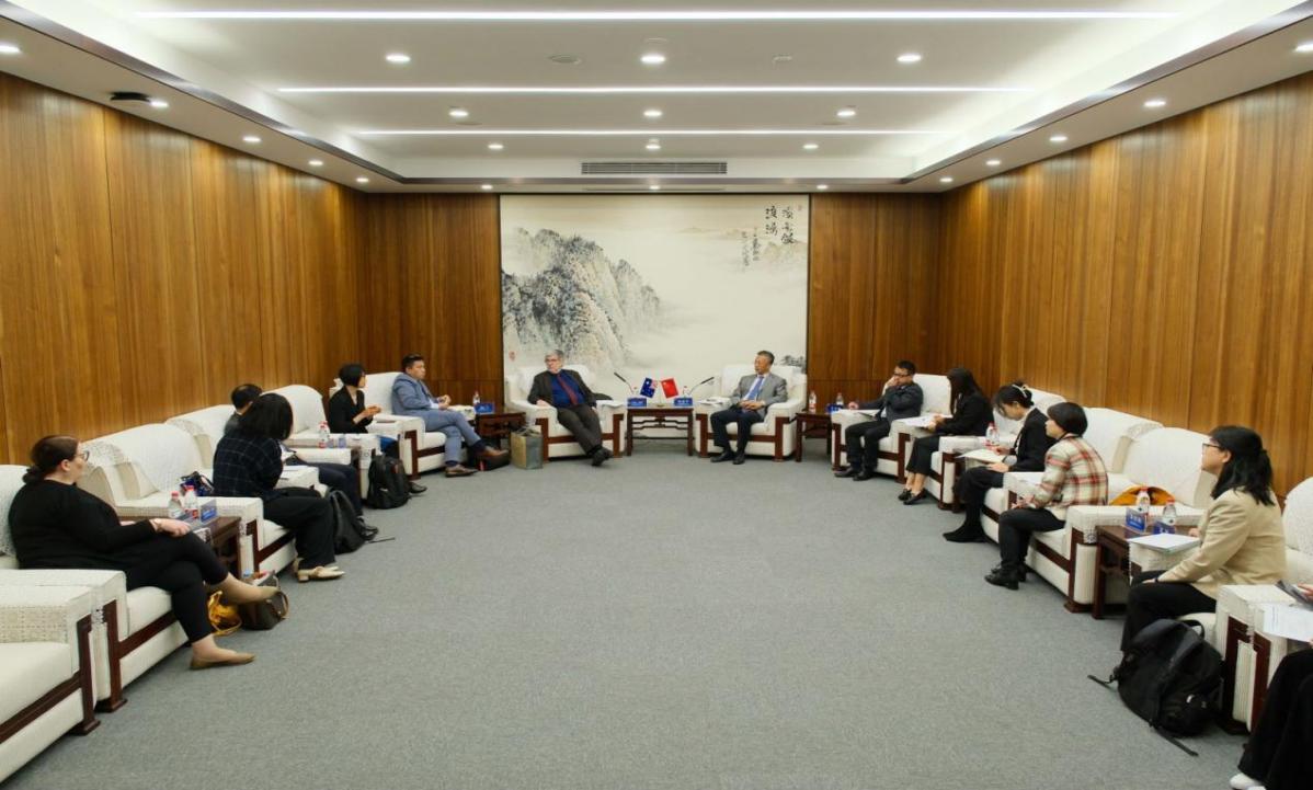 约翰·贝尔回顾了两校数年来的友好往来与合作历史,并介绍了南昆士兰大学的专业设置与优势学科,表示希望以合作办学、联合培养等方面为切入点,为两校师生提供更加广阔的发展平台,与我校共同推进未来交流合作相关事宜。