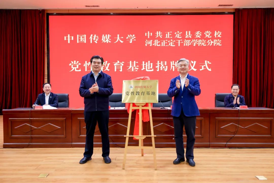 会上,进行“中国传媒大学党性教育基地”揭牌仪式。廖祥忠书记和王俊红书记共同为“中国传媒大学党性教育基地”揭牌。