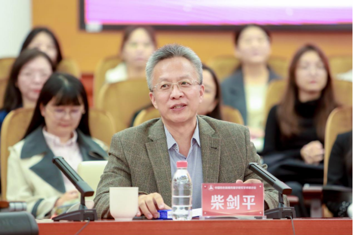 中国传媒大学党委常委、副校长柴剑平出席自主知识体系构建背景下学术期刊的创新与发展研讨会并致辞。他介绍了中国传媒大学期刊矩阵建设取得的成绩以及对学科建设的贡献。柴剑平表示,学术期刊是开展学术研究交流的重要平台,是传播思想文化的重要阵地,是促进理论创新、科技进步、人文交流的重要力量。推动中国特色新闻传播学研究重大专项工作,需要得到各大名刊的鼎力支持,希望学术期刊同仁关注重大专项研究团队,支持他们推出最新的理论研究成果,传播学术声音。