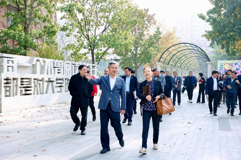 会后,廖祥忠书记带领各位校务委员在校园赏秋,并参观改造一新的图书馆。
