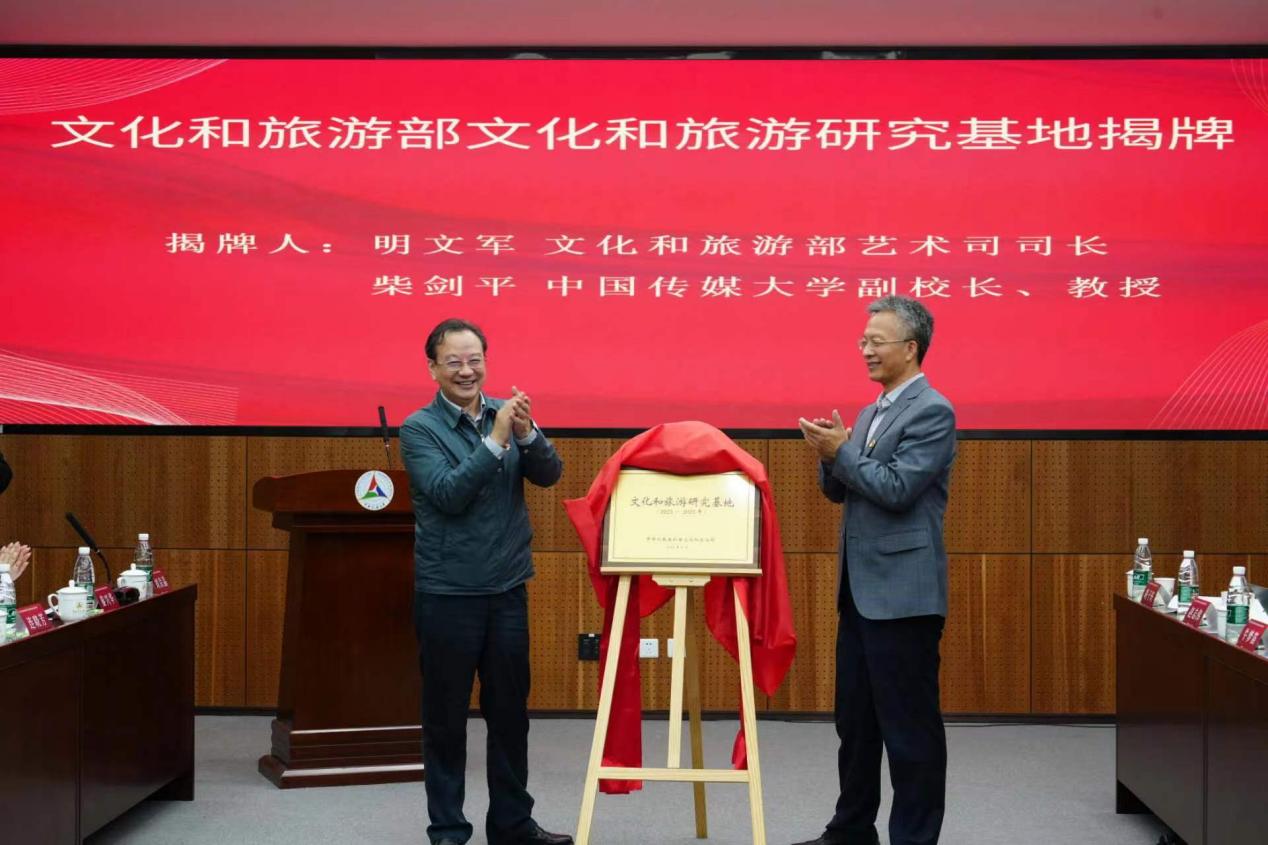 会上还举行了文化和旅游部文化和旅游研究基地揭牌仪式,柴剑平与明文军共同为中国传媒大学艺术研究院入选文化和旅游研究基地揭牌。