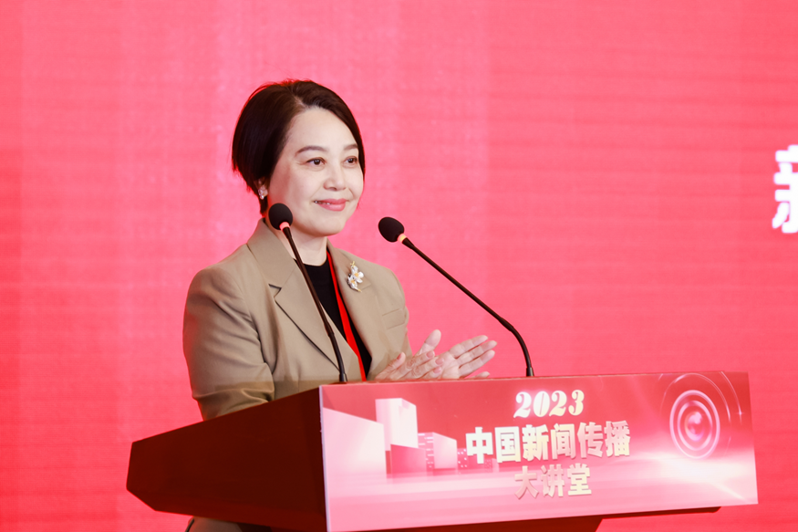 高晓虹介绍了2023年“大讲堂”以及四年以来建设的总体情况,通过主题化、体系化、视听化探索,努力扎实地将“大讲堂”做成辐射全国的新课堂、部校共建的新成果、新文科建设的新标杆、新闻传播教育的新拓展。