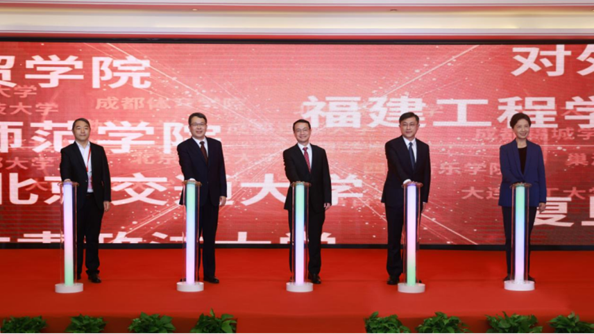 教育部高等教育司司长周天华,中宣部新闻局副局长张庆华,中国传媒大学校长张树庭,教育部高等学校新闻传播学类专业教学指导委员会主任委员、中国传媒大学新闻传播学部学部长高晓虹,暨南大学新闻与传播学院党委书记支庭荣共同启动2023年“中国新闻传播大讲堂”