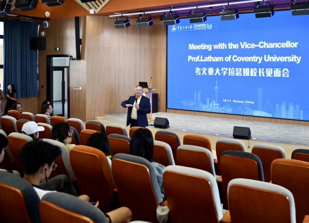 中国传媒大学副校长李新军首先对中传考文垂学院快速发展的成果给予肯定,也对未来的合作提出两点建议:一是希望考文垂大学派出稳定的、专业能力强的教授常驻海南授课;二是为了确保双方沟通交流顺畅,考文垂大学要派出具有丰富的高校管理经验的管理团队,建立健全有效沟通机制,充分搭建起中传考文垂的合作桥梁。