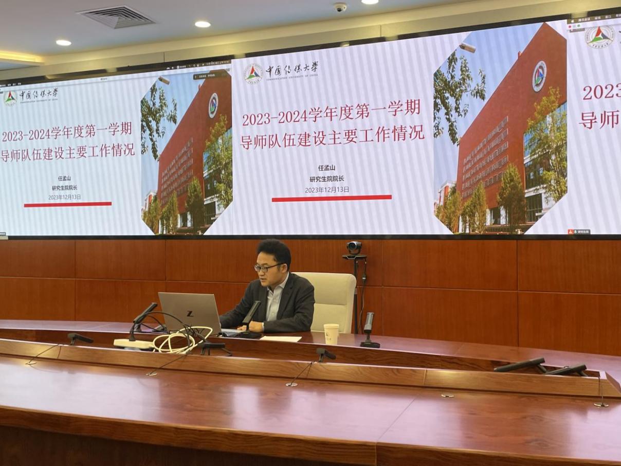 任孟山总结了本学期导师队伍建设工作情况,并对下学期工作重点进行部署。他详细介绍了研究生导师评聘文件的制定及修订过程,强调其对加快我校研究生教育高质量发展的重要意义。他提醒导师们要明晰所在专业的学科目录调整情况,转变观念,跟上国家和学校的研究生教育改革步伐,为推进我校“双一流”建设和创新型人才培养工作贡献力量。他还对下学期研究生院准备开展的重点工作做了简要介绍。