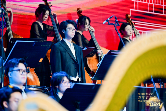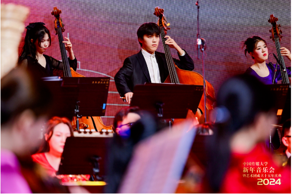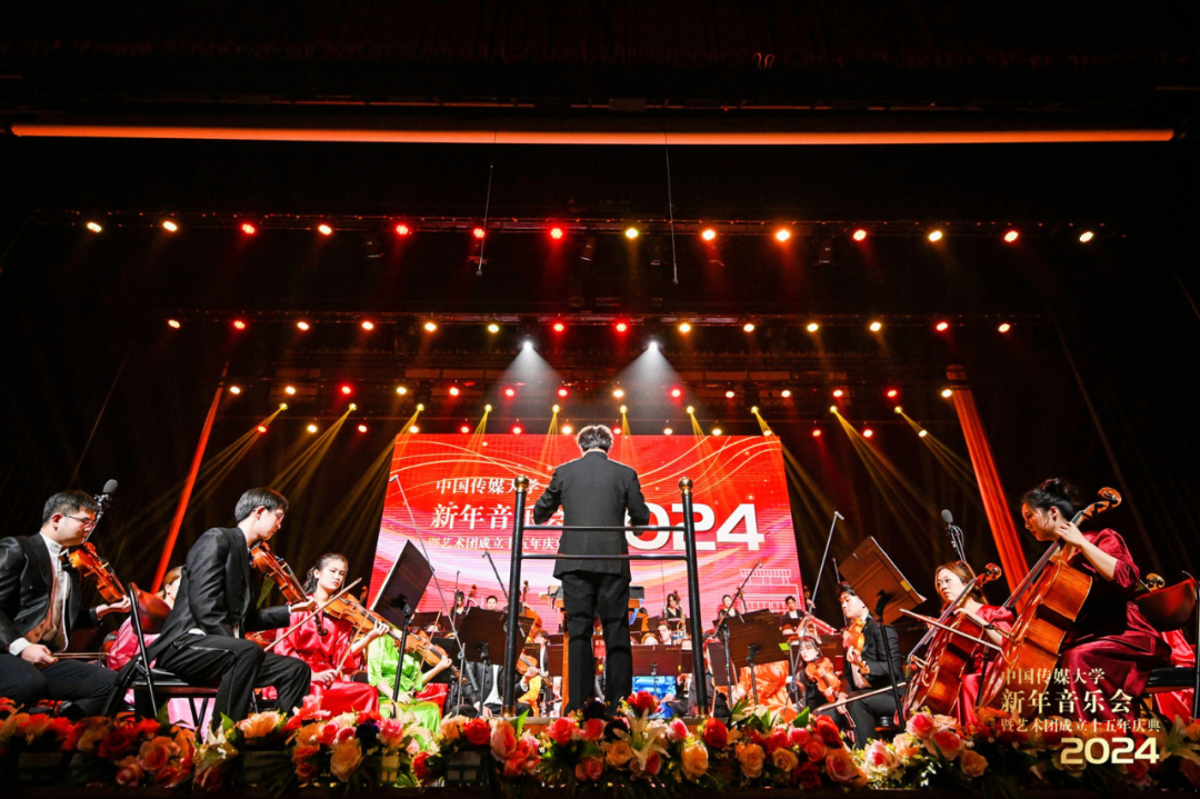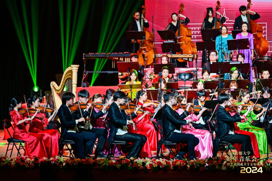 中国传媒大学2024新年音乐会暨艺术团成立十五周年庆典由艺术教育中心和音乐与录音艺术学院承办,中传青年爱乐乐团、音乐表演系、学校舞蹈团,以及音乐与录音艺术学院教师曹芙嘉、汤非、易艺参加演出。