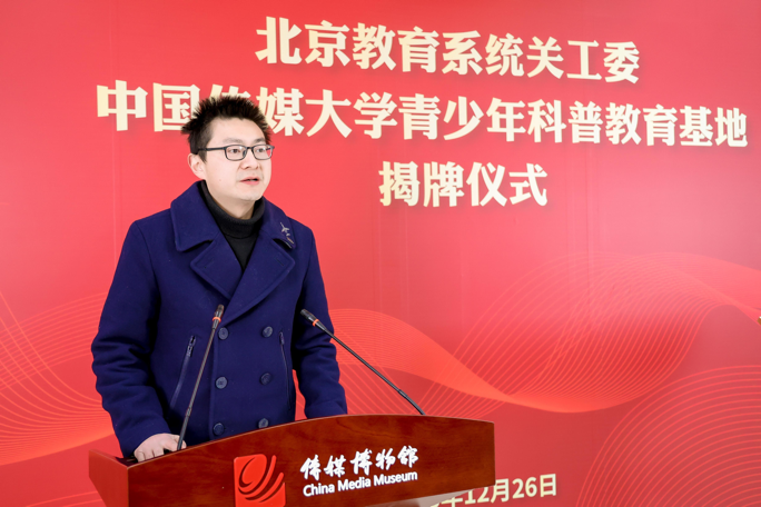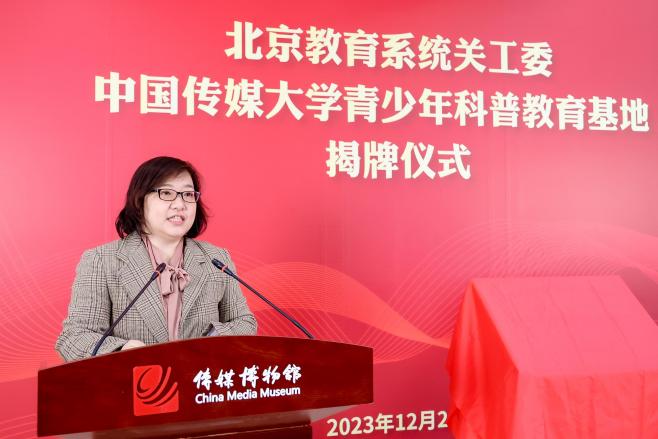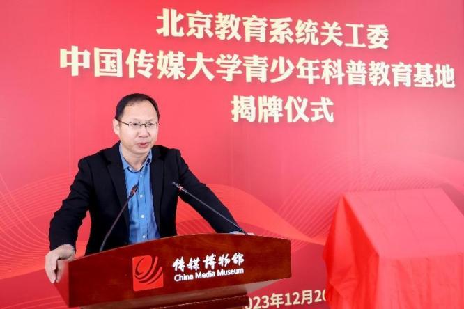 (通讯员 张丽)2023年12月26日,北京教育系统关工委“中国传媒大学青少年科普教育基地”揭牌仪式在中国传媒大学传媒博物馆举行。揭牌仪式由中国传媒大学离退休工作处处长兼学校关工委秘书长傅楠同志主持。