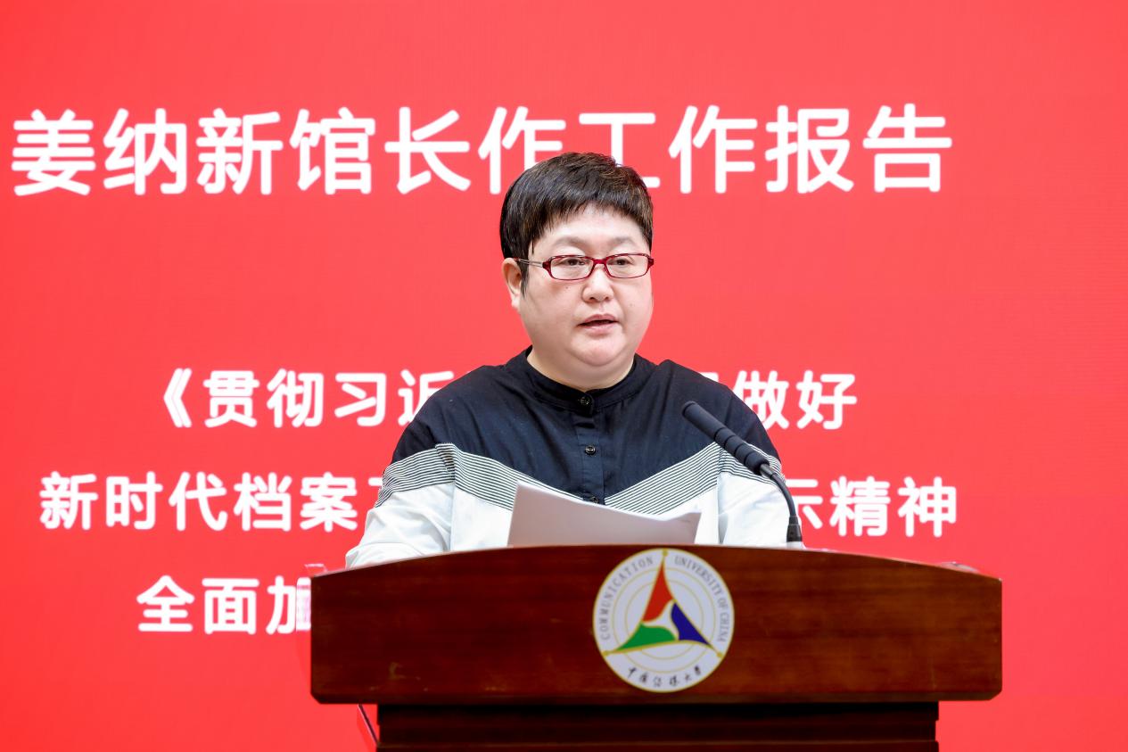 档案馆馆长姜纳新作《贯彻习近平总书记做好新时代档案工作的重要指示精神 全面加强学校档案工作》报告,报告从习近平总书记关于档案工作的重要指示批示精神、学校档案工作存在的主要问题、全面加强学校档案工作,努力构建档案工作高质量发展新格局、向史而新,开创未来等四个方面,配合档案馆宣传片,全面介绍了学校档案工作的新格局,以及存量数字化、增量电子化、利用网络化、服务智能化、管理现代化的发展目标。