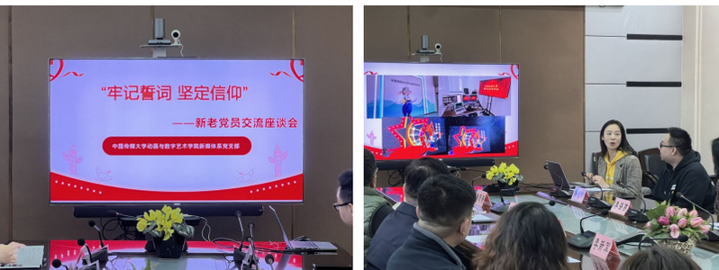 (通讯员 英子)2023年12月27日下午,动画与数字艺术学院新媒体系党支部召开“牢记誓词 坚定信仰”新老党员交流座谈会,学校党委常委、副校长李新军出席并做指导讲话。动画与数字艺术学院院长、党委副书记王雷,五级组织员刘灵,党委副书记王芯蕊,副院长陈京炜和新媒体系党支部全体教师党员参加本次座谈会。