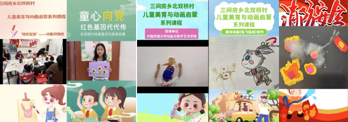 立足于北双桥村的产业和地域资源,依托学院的学科专业优势,中国传媒大学动画与数字艺术学院本科生党支部成员带头研发和讲授系列动画启蒙和美育课程,用专业知识进行乡村美化实践。该活动旨在打造集乡村服务中心、学习文体活动中心为一体的教育平台,工作中逐步形成了研民情、研课、研学、研发、研讨“五研一体”的机制。