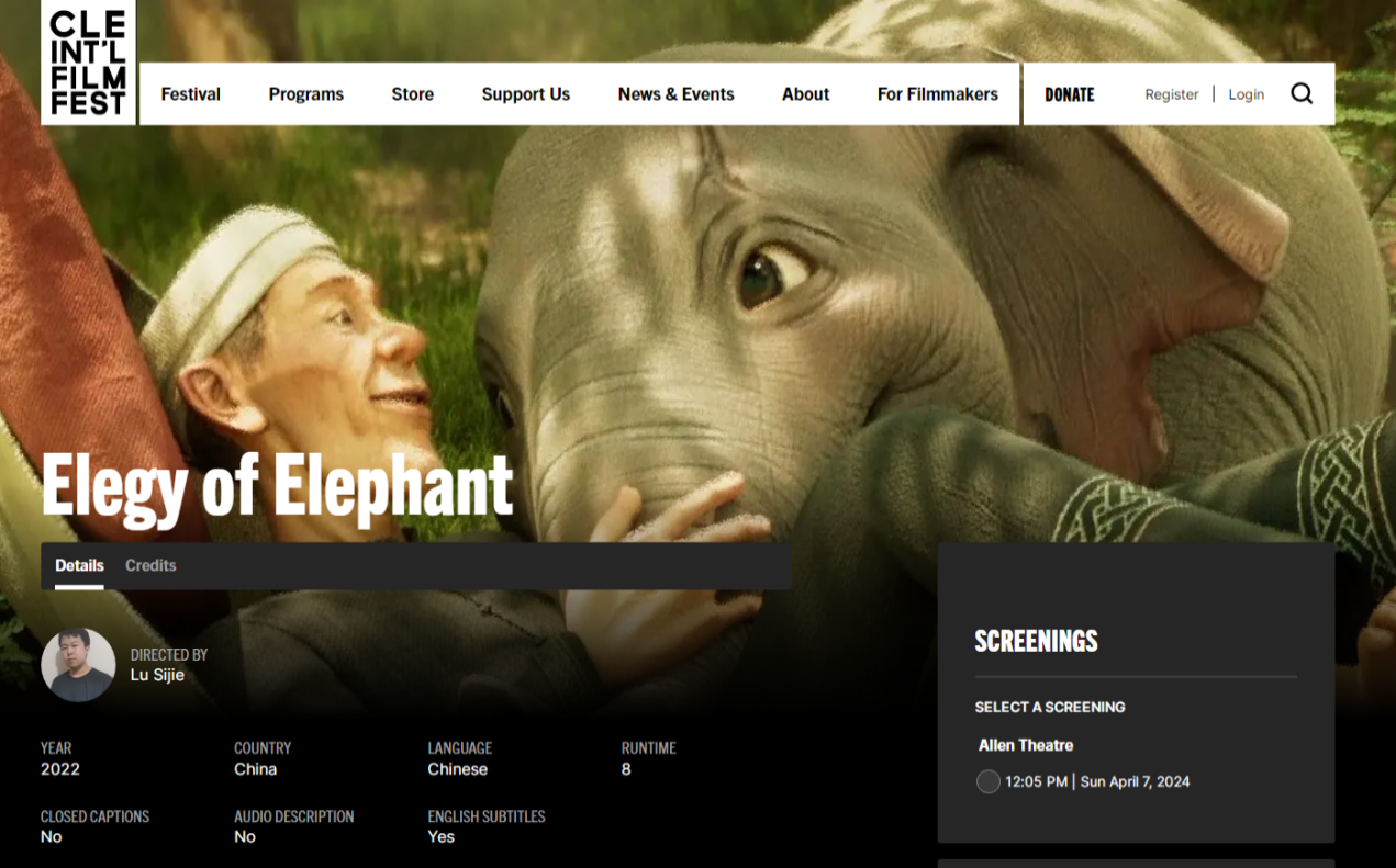 (通讯员 张若琦)3月8日,2024克利夫兰国际电影节(Cleveland International Film Festival)官方网站发布入围名单,我校动画与数字艺术学院2018级动画专业学生卢思杰、李金泽、佘钰奇、马心玥、张淙乐、熊炜的作品《象群挽歌》(Elegy of Elephant)入围动画短片单元。
