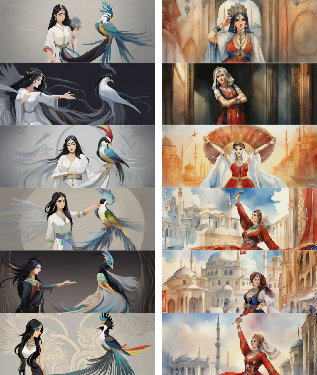 《丝路行旅》(Silk Road Journey)是将AI技术、交互艺术与文化遗产保护相融合创作的人工智能互动装置。在这部交互作品中,观众将作为二次元空间的旅行者,在丝绸之路沿线的历史城市间穿梭,与古城合影,并生成独一无二的纪念影像。该作品运用AI技术为观众打造了六处可体验的跨时空场景,包括:长安回望锦绣成堆山顶千门、敦煌抚弄羌笛胡笳蔽空回响、波斯帝国膜拜鸟王西摩格、尼罗河畔重逢猫神巴斯特、土耳其寻觅欧亚文明边界、意大利悠长水巷的慢摇。