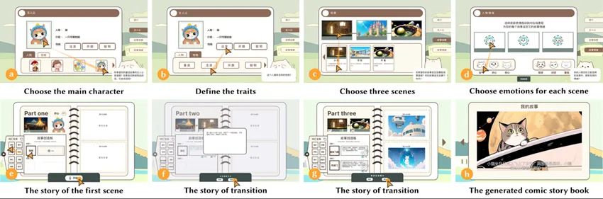 项目前期,研究团队与小学师生密切合作,共同设计了交互系统中的人物与场景。系统开发完成后,团队邀请小学生试用。结果显示,《智绘故事》有效协助不同年龄层的儿童创作出高质量的故事。对于年幼的孩子,AI生成的文本成为激发创意的宝贵资源;对于年长的孩子,它提供了思考故事多种可能性的全新挑战。该项目的探索不仅拓展了儿童的想象空间,也助力其语言和创新能力的提升,是交叉学科范式下探索AI技术赋能交互设计与儿童教育等领域的有益尝试。