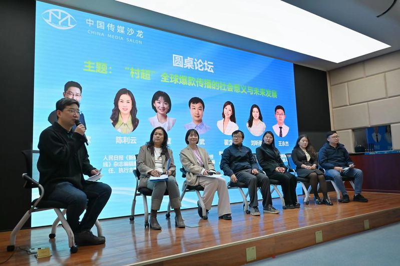 中国传媒大学数字人研究院院长吕欣主持了圆桌论坛环节。来自人民日报、中国日报社、《现代传播》、数据观、中国体育报、贵州村超宣传专班的嘉宾们分别就“村超”传播影响力的话题分享了自己的真知灼见,现场气氛热烈、掌声不断。