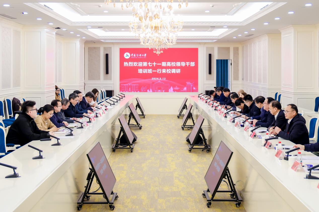 (记者 尚新英 摄影 申皓文)3月13日下午,国家教育行政学院第71期高校领导干部进修班学员到我校调研交流。党委副书记、校长张树庭,党委副书记李众,党委常委、副校长王晖,党委常委、统战部部长张绍华等参加调研座谈。