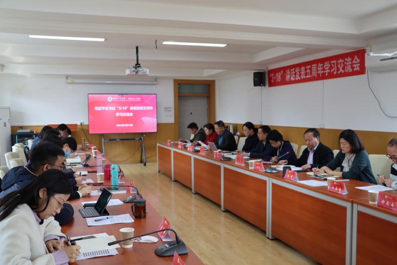 (通讯员 孙靖 马肖琦 摄影 隗书贤)2024年3月15日下午,马克思主义学院召开习近平总书记“3·18”重要讲话发表五周年学习交流会,校党委副书记李众与思政课教师和马院学生代表共同重温习近平总书记在学校思想政治理论课教师座谈会上的讲话。本科生院副院长贺小飞、研究生院副院长李楠参加会议,交流会由马克思主义学院党委书记王维家主持。