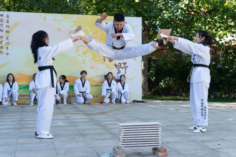 中国传媒大学跆拳道协会在“百团大战”现场表演