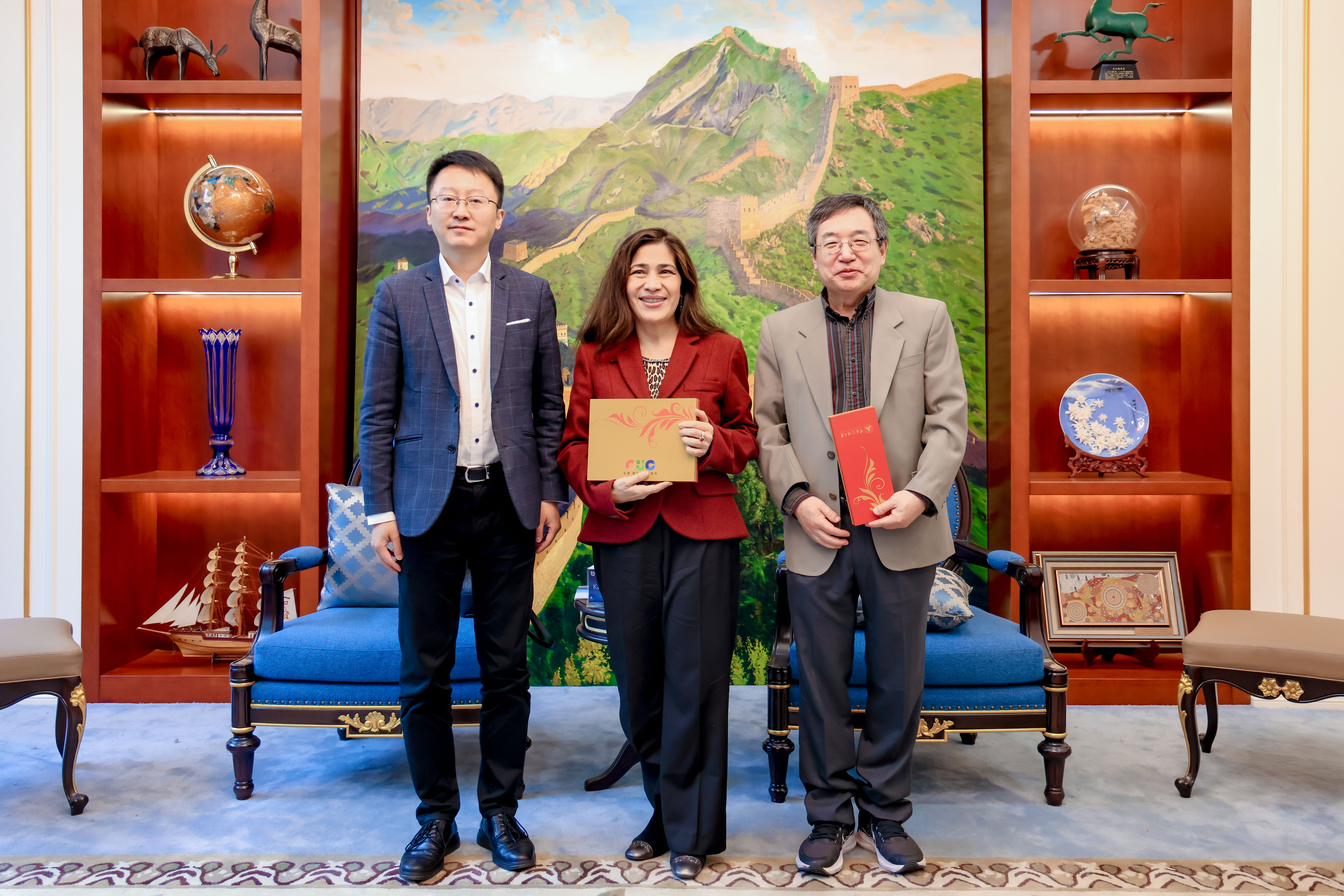 国际交流与合作处处长钟丹丹,人类命运共同体研究院副院长、IAMCR国际传播分会副主席姬德强,国际传播研究中心副主任黄典林等参加此次会见。