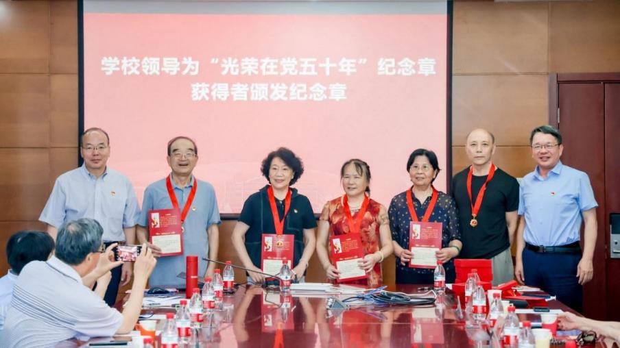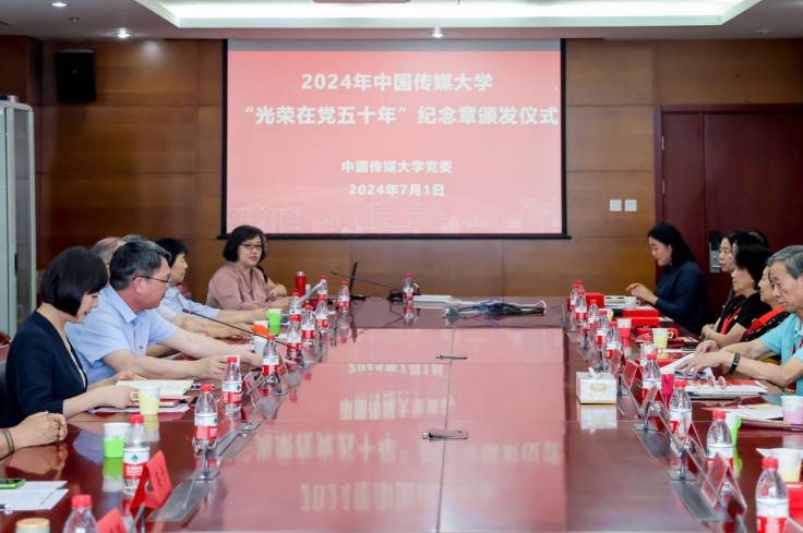 (通讯员 张丽)7月1日上午,中国传媒大学“光荣在党50年”纪念章颁发仪式在明德楼918会议室举行。学校党委副书记、校长张树庭,党委常委、副校长刘守训,党委常委、党委组织部部长徐红梅,“光荣在党50年”纪念章获得者代表,离退休人员党委委员,青年教生党员代表,以及相关部门参加了颁发仪式。本次仪式由离退休工作处处长兼离退休人员党委副书记傅楠主持。