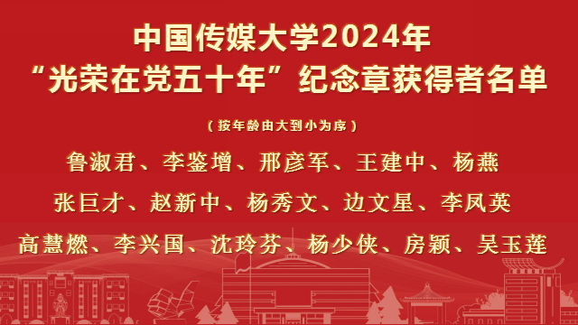 中国传媒大学2024年“光荣在党五十年”纪念章获得者名单
