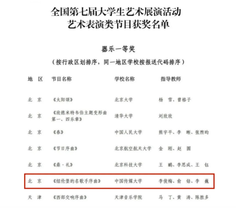 近日,由教育部和湖北省人民政府主办,湖北省教育厅和襄阳市人民政府承办的全国第七届大学生艺术展演的现场展演在湖北襄阳举行。中国传媒大学学生艺术团代表北京市高校参加了现场展演,中传青年爱乐乐团再获艺术表演类乙组(专业组)器乐一等奖、舞蹈团首次进入全国展演并荣获艺术表演类甲组(普通组)舞蹈一等奖和优秀创作奖。