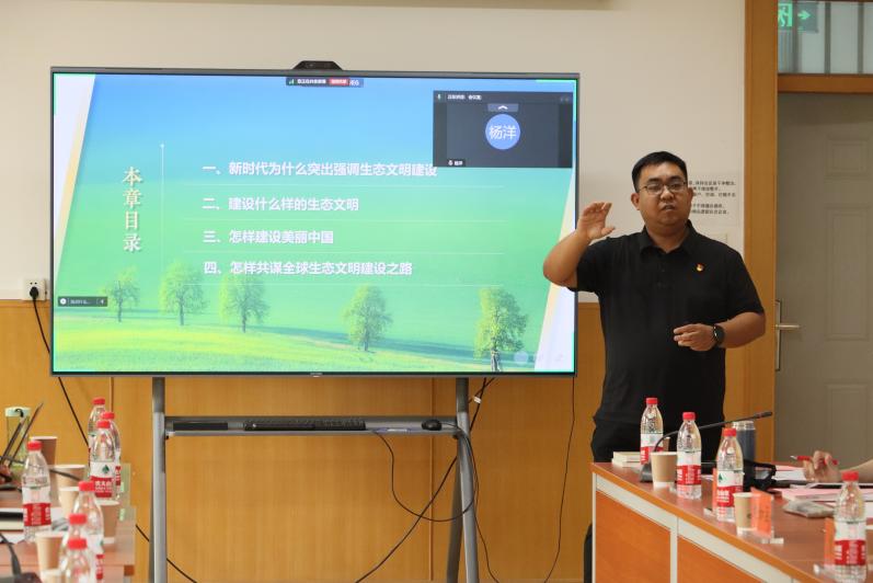 第十三届北京高校思想政治理论课教学基本功比赛一等奖获奖者、青年教师高宇以“习近平新时代中国特色社会主义思想概论”课程中“建设社会主义生态文明”专题为例进行教学展示,从教学重难点、问题设置、案例选取、参考资料等方面分享了该课程的教学经验和体会,对“双聘”专职思政课教师进行岗前培训。