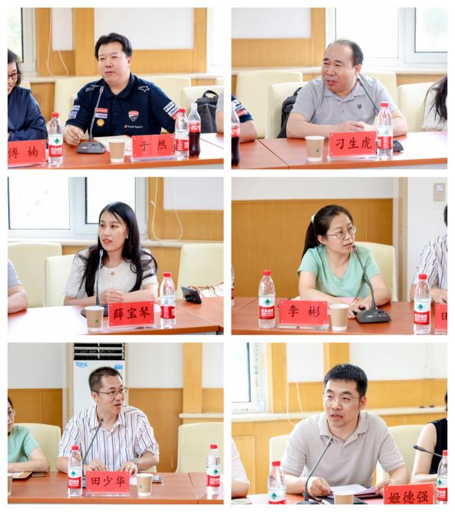 “双聘”专职思政课教师分别介绍了自身学习工作经历、教研特长,一致表示要珍惜机会,同马院思政课教师一道认真学习、深入钻研,服从管理,上好思政课。“双聘”思政课教师姬德强从政治定力、理论体悟、沟通关系、特色融入四个方面阐述了对讲好思政课,以党的创新理论引领教学科研实践的经验与思考。