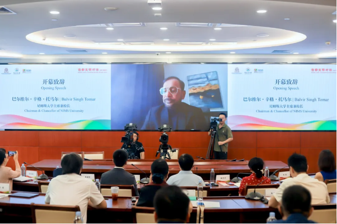 印度尼姆斯大学主席兼校长巴尔维尔·辛格·托马尔在致辞中表示,中国和印度都有深厚的古代文明,两国一直互相尊重,密切联系,对世界产生了深远影响。期待与会专家学者以此次活动为契机,不断拓展交流渠道和领域,增加高校和机构间的互动,在专业对话、学术对话中促进文明互鉴,推动两国创新和发展。