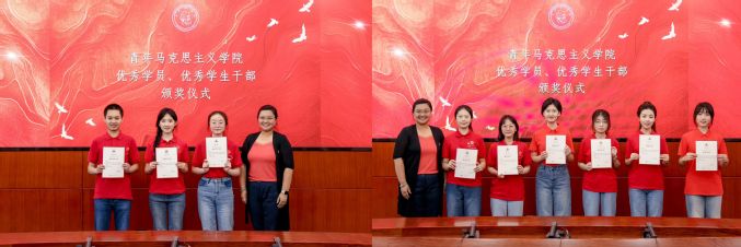 学生工作部(处)(武装部)部(处)长郭婧娜为获得“优秀学生干部”和“优秀学员”的同学们颁发证书。