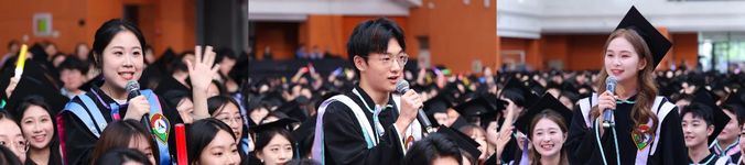 毕业典礼现场,23名来自不同学院的毕业生代表发言。同学们对学校的培养表示感谢,讲述了自己在校学习期间的收获与感悟,并分享了未来的规划与愿景。毕业生们铭记习近平总书记在给中传全体师生回信里的殷切嘱托,怀揣传媒报国的赤诚理想,投身科技创新行业一线,扎根社会治理基层沃土,坚守新闻舆论时代阵地,践行国际传播使命担当,用实际行动奔赴各行各业最前沿。