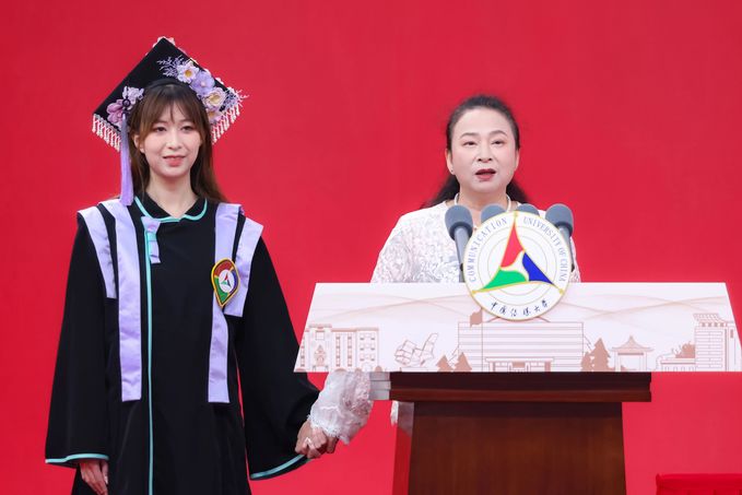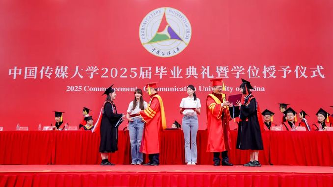 6月15日上午,中国传媒大学2025届毕业典礼暨学位授予仪式在学生活动中心隆重举行。