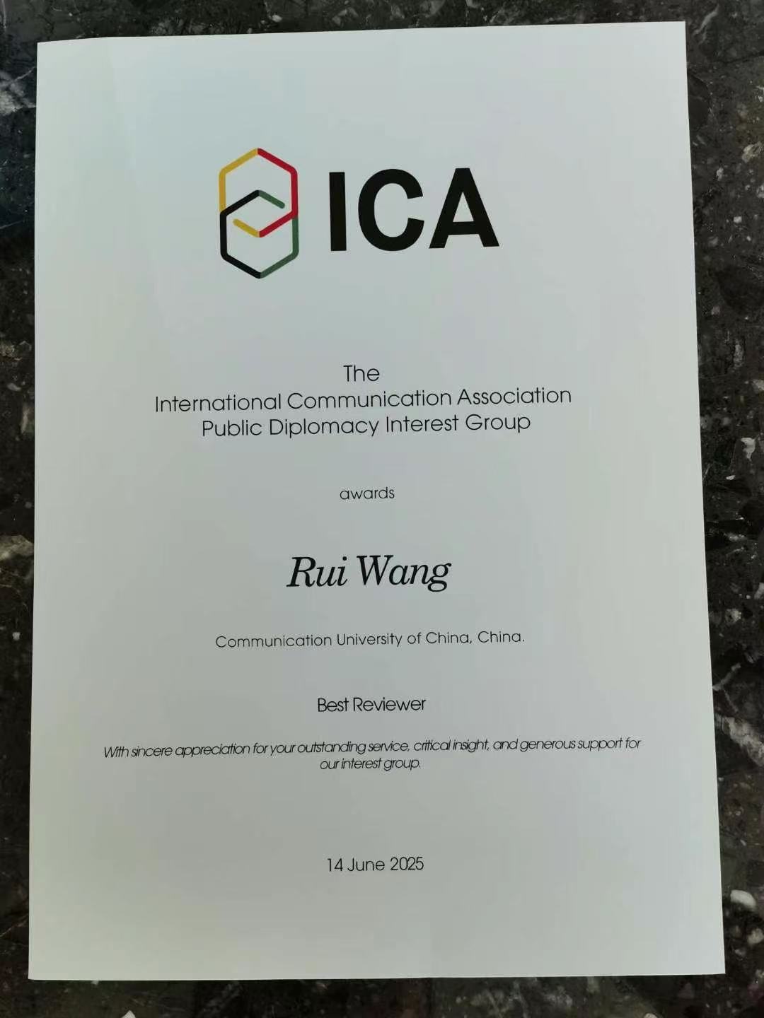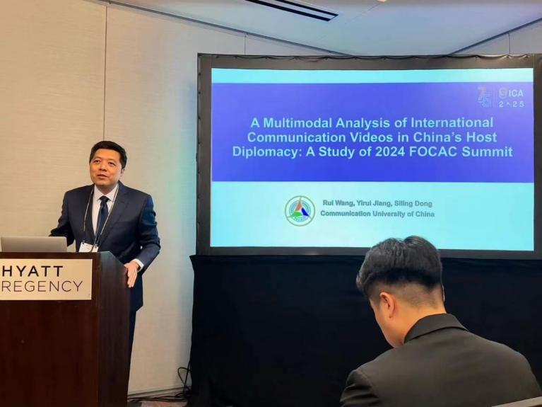 在本次年会上,我校传播研究院教授王锐博士,获得公共外交学分会“最佳审稿人”奖,并做“A Multimodal Analysis of International Communication Videos in China’s Host Diplomacy:A Study of 2024 FOCAC Summit”(《中国主场外交国际传播视频的多模态分析:以2024年中非合作论坛峰会为例》)论文主题报告分享。