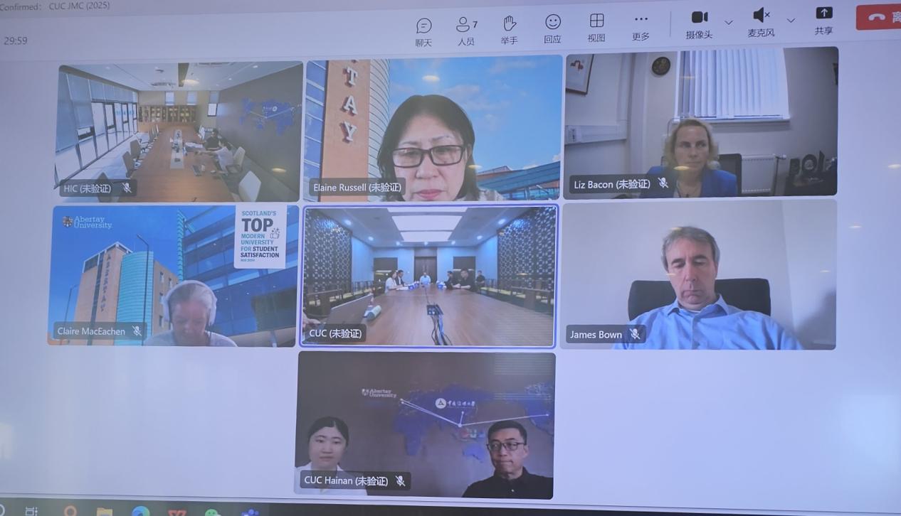 会议在北京、海南、邓迪三地设有会场,采用视频连线的方式进行。本次会议旨在进一步深化中国传媒大学与阿伯泰大学的合作,以制度创新和质量共治,把中传—阿伯泰项目打造成中英高水平合作办学新范式。