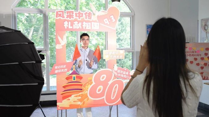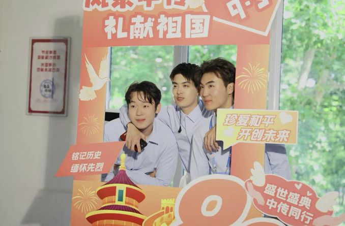 我校选派戏剧影视学院王诤教授带领从戏剧影视学院和电视学院选拔的72名同学,参与大会电视转播工作。自今年4月起,学校启动筹备工作,历经严格选拔、系统培训与实战锻炼。在这场大型综合电视转播活动中,师生团队分工明确、协同发力,分别承担统筹协调、新媒体摄像、转播系统摄像助理、导演助理、制片等多类岗位,足迹遍布景山、天安门城楼、广场中央及国博、人民大会堂楼顶等核心区域。纪念大会的很多精彩镜头背后,都凝结着中传人的专业付出与不懈努力。