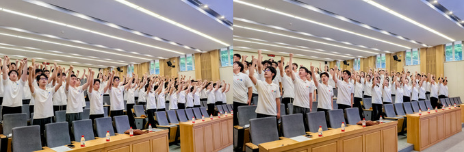 排练期间,师生们不仅精益求精地打磨声部配合、队形变换与情感表达,更将思想政教育深度融入艺术实践。校领导为合唱团讲授《精神铸魂 青春担当》专题党课,深入阐释伟大抗战精神的时代内涵与青年的历史使命,引导师生在活动中厚植家国情怀、坚定理想信念。